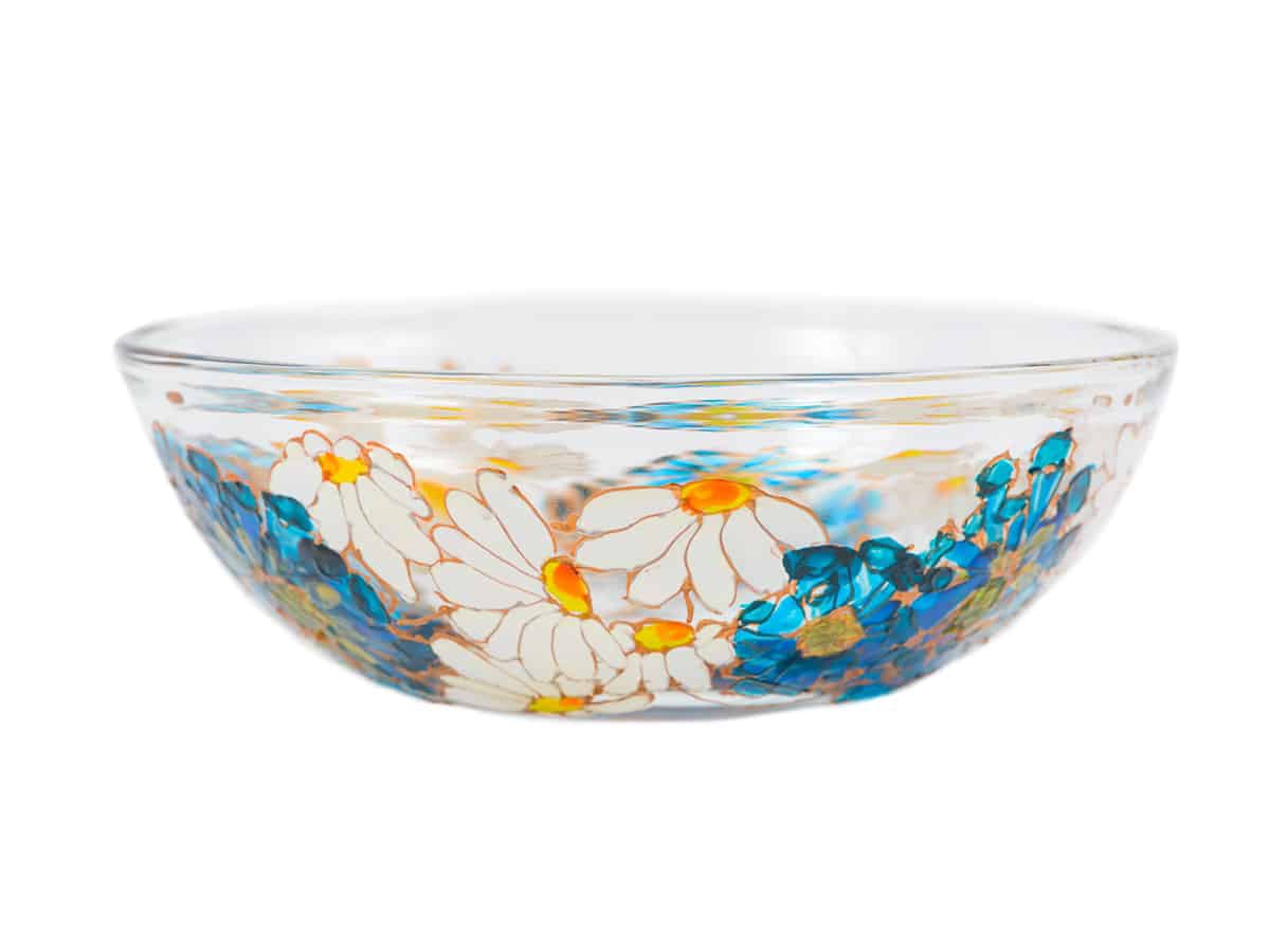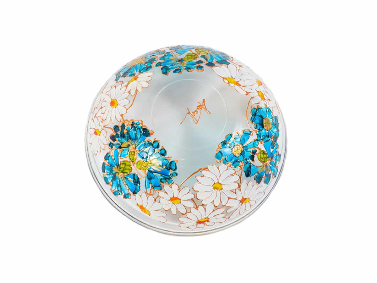 Bol pictat manual cu margarete si albastrele, trimite cu gandul spre frumoasele peisaje de campie din timpul verii.