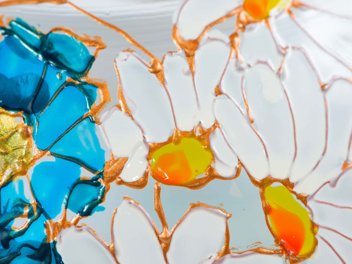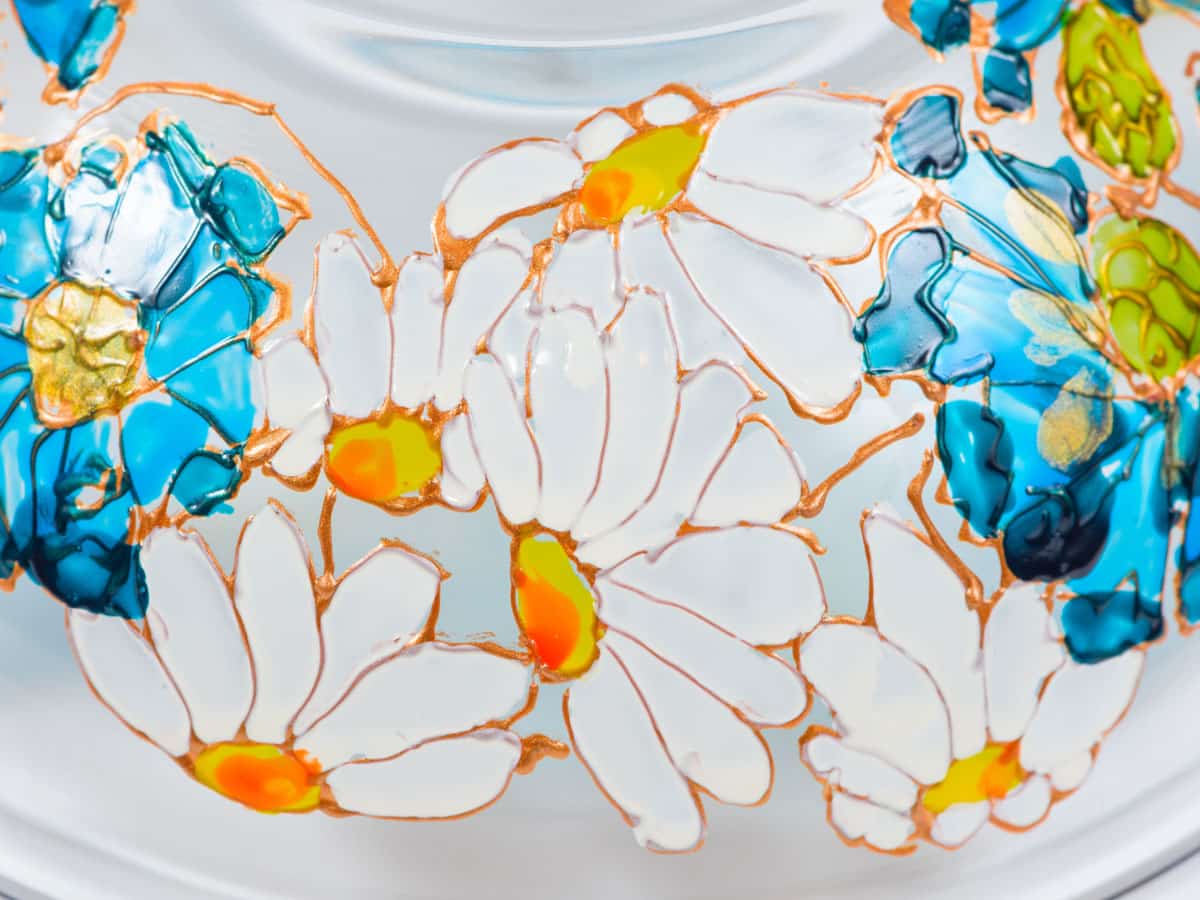 Culorile folosite sunt speciale pentru pictura pe sticla.  Dupa uscare, suprafata colorata este rezistenta si suporta spalare usoara cu un burete fin de spalat vase cu apa rece/calduta si detergenti de vase.