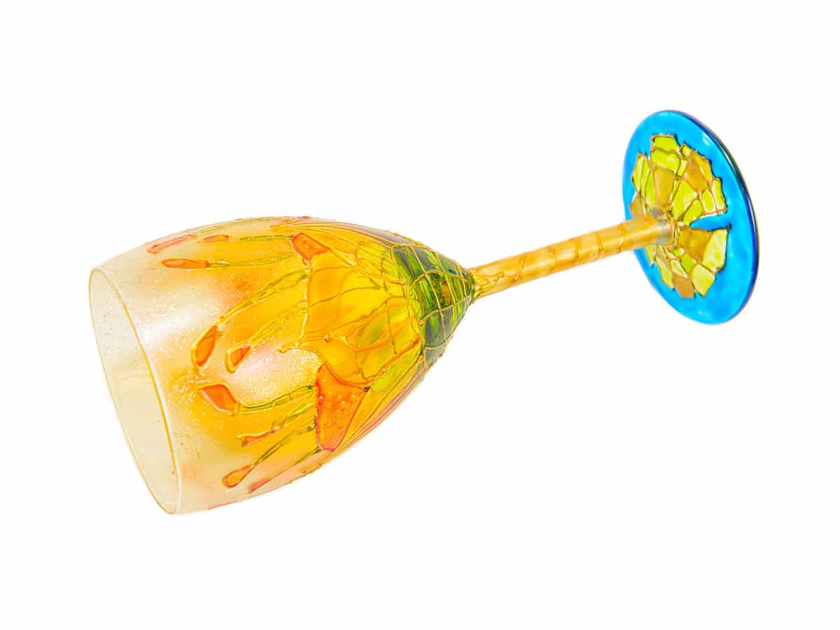 Culorile folosite sunt speciale pentru pictura pe sticla.  Dupa uscare, suprafata colorata este rezistenta si suporta spalare usoara cu un burete fin de spalat vase cu apa rece/calduta si detergenti de vase.