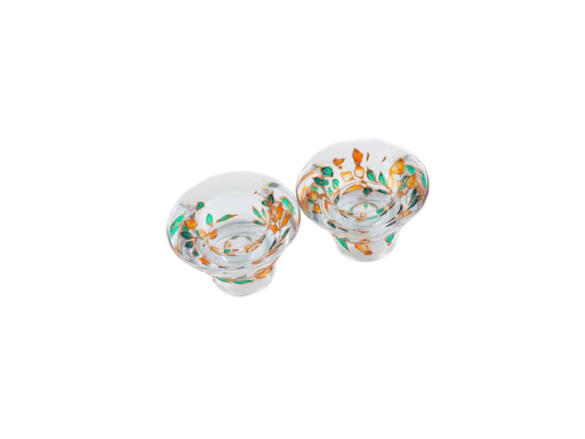 Set doua suporturi de lumanari pictate manual cu macese parguite. Suporturile de lumanari au un design ce le permite sa poata fi folosite atat pentru lumanare rotunda tip pastila cat si pentru lumanarea cilindrica. Acestea sunt potrivite sa aduca un plus de culoare in orice moment din viata dumneavoastra, de la o cina romantica la un eveniment sau o masa de sarbatori alaturi de cei dragi. Sunt cadoul ideal si vor infrumuseta camera dumneavoastra in fiecare zi.
